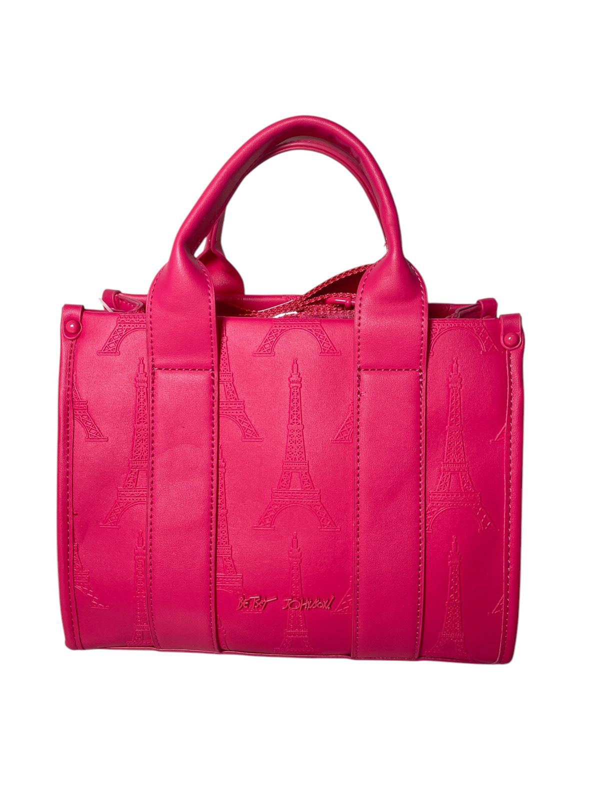 Añade un toque de encanto y estilo audaz a tu guardarropa con esta espectacular bolsa de mano de la marca Betsey Johnson. Con un vibrante color rosa fucsia, esta pieza es perfecta para mujeres que desean destacar y expresar su individualidad. La bolsa presenta un diseño grabado de la icónica Torre Eiffel, lo que añade un aire de elegancia y sofisticación, ideal para amantes de la moda con un toque parisino.