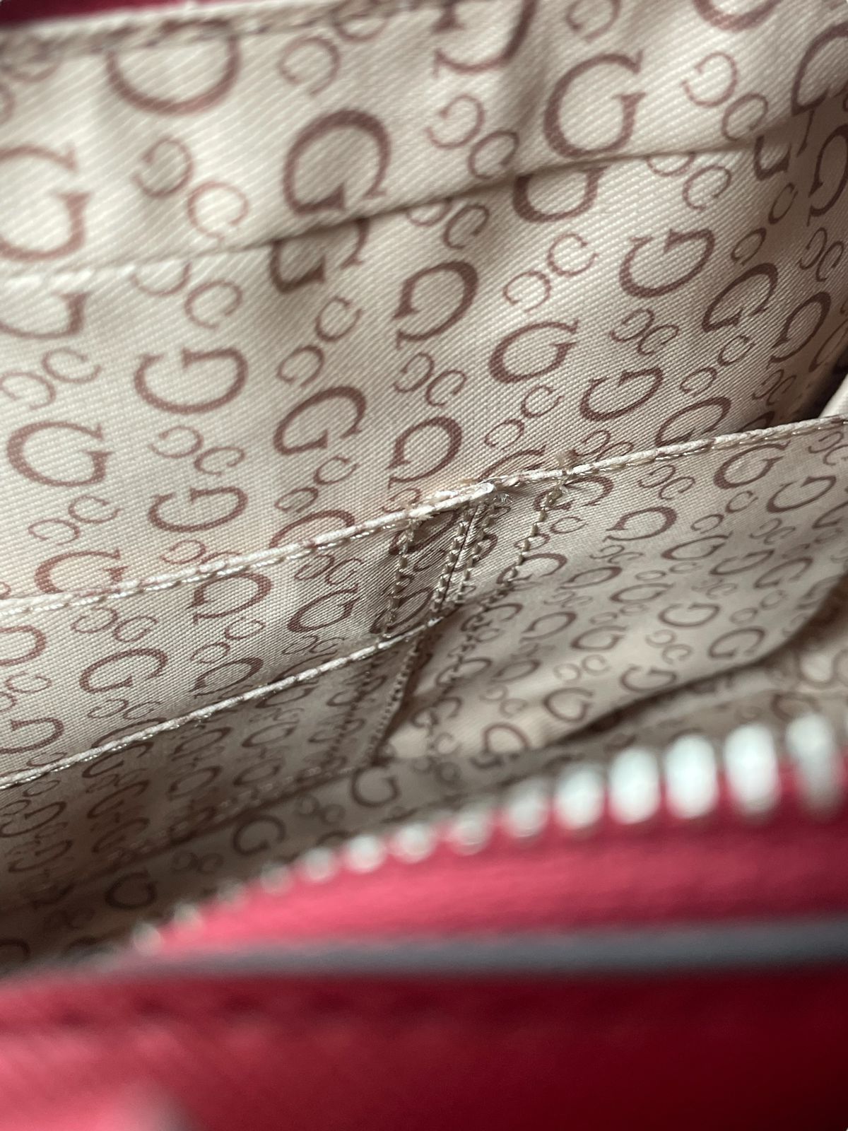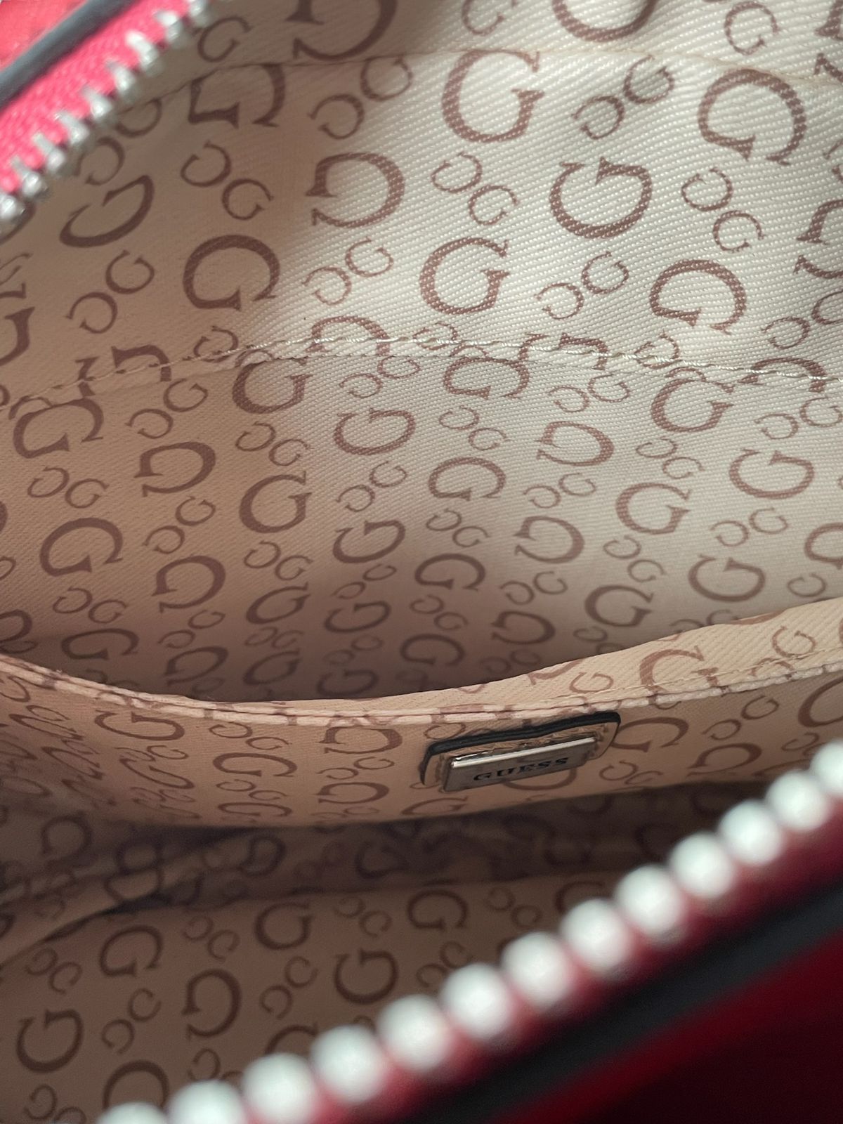 - ¿Es este bolso de mano Guess en negro y rojo auténtico? Sí, todos nuestros productos son 100% auténticos y provienen directamente de la reconocida marca Guess.