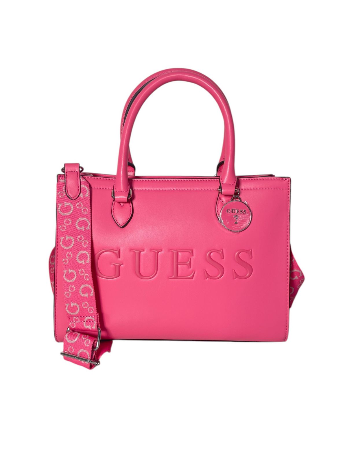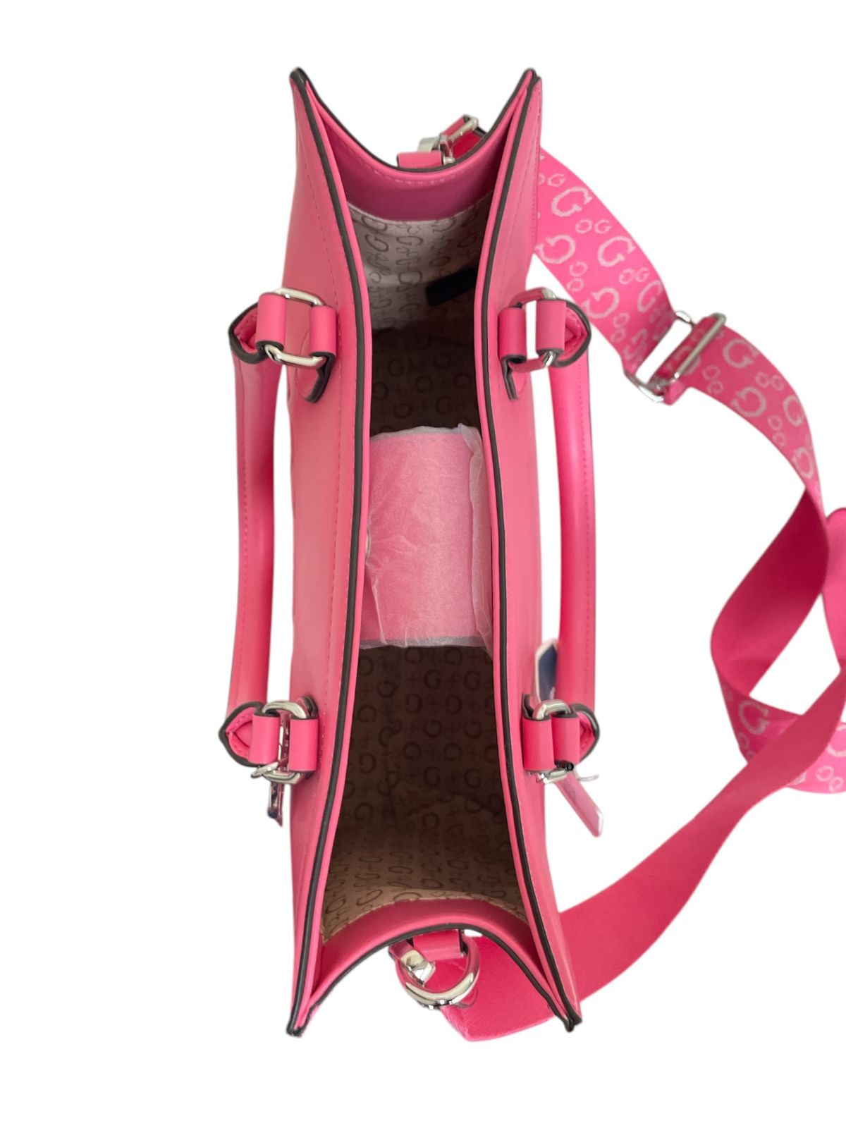 Bolsa Guess Fucsia con Logo en Relieve y Correa Ajustable