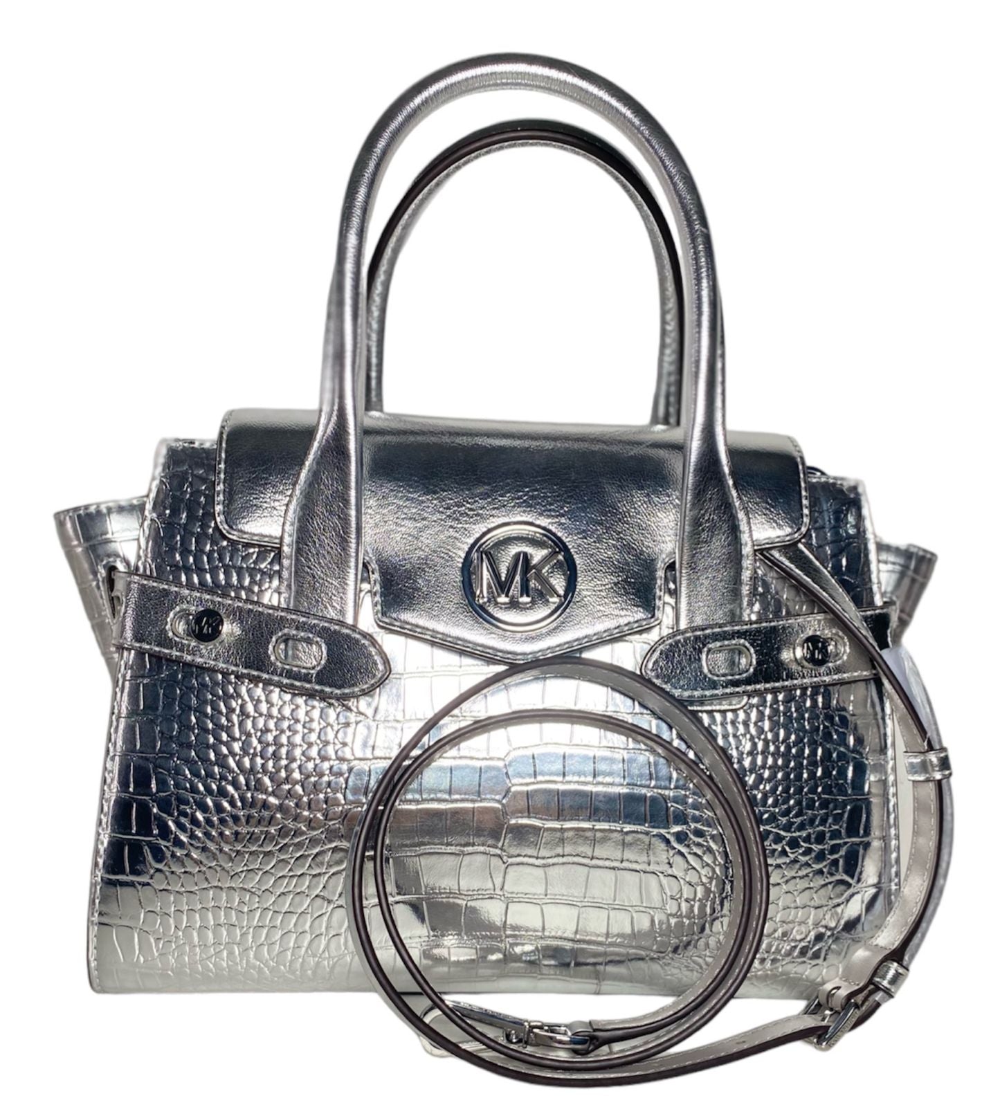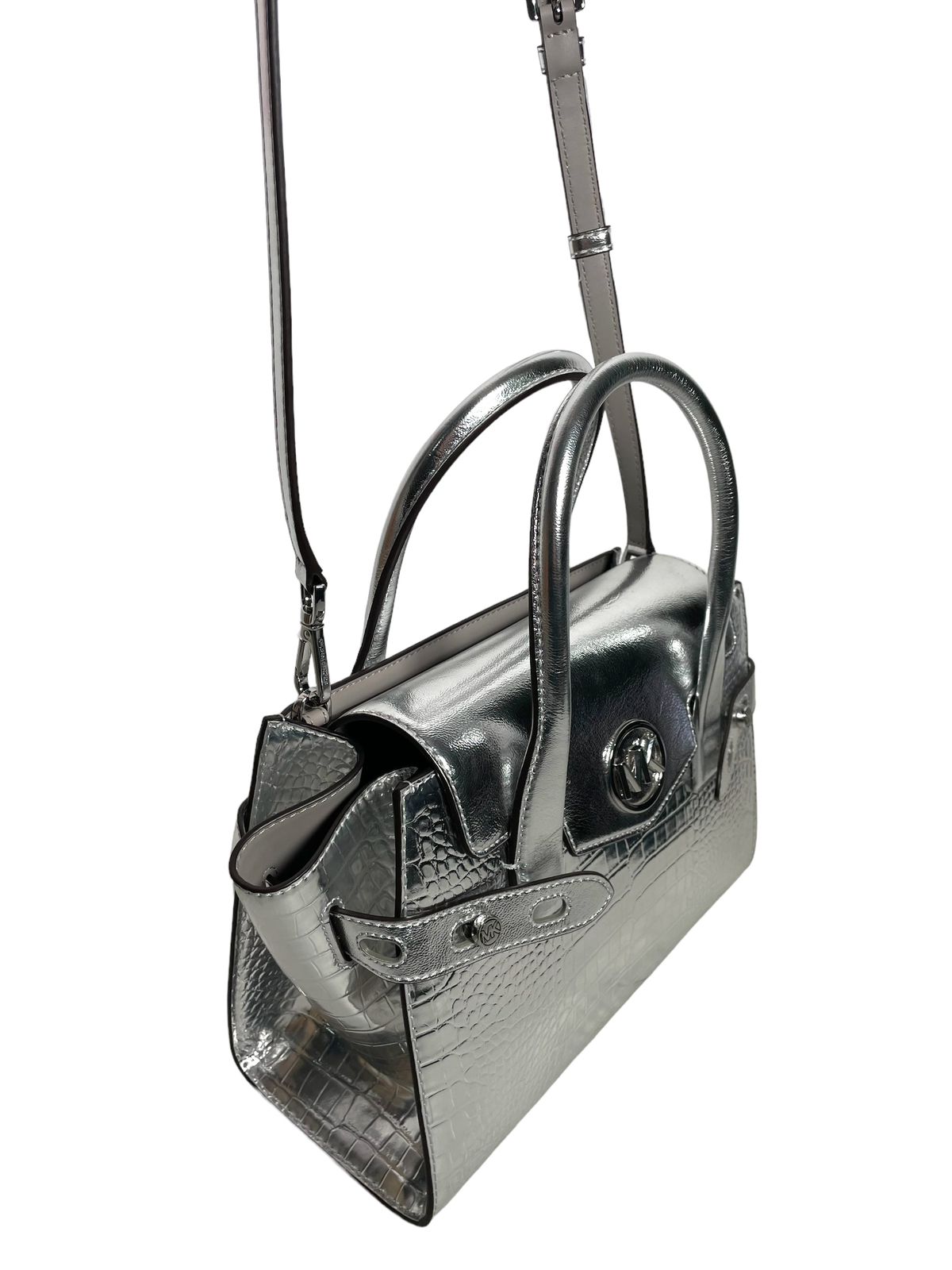 - ¿Es este bolso Michael Kors plateado auténtico? Sí, todos nuestros productos son originales y provienen directamente de la reconocida marca Michael Kors.