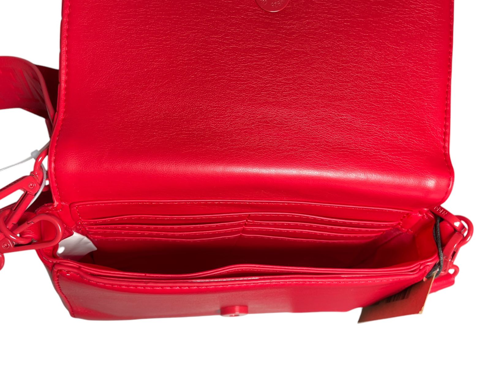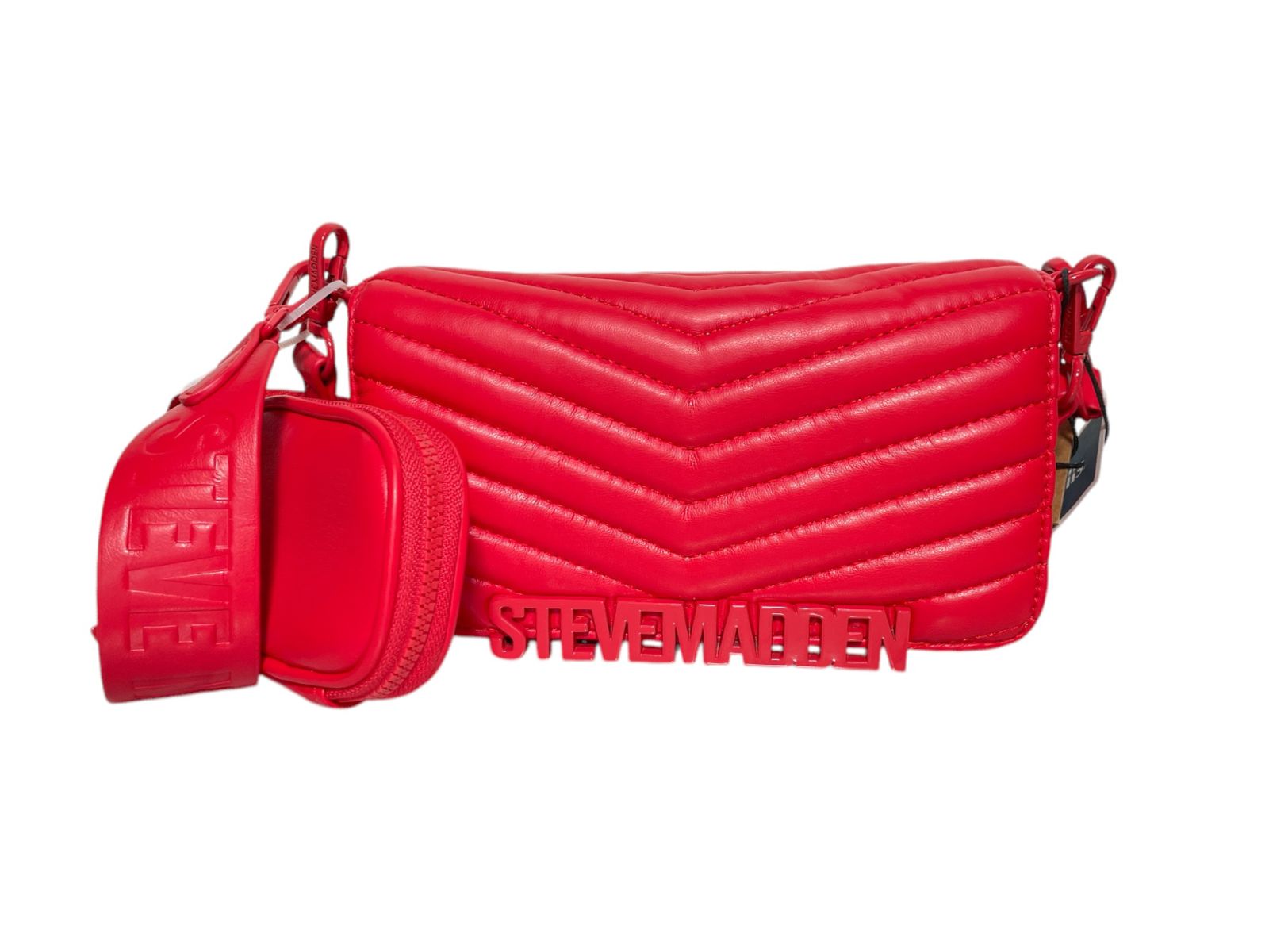 Esta bolsa roja Steve Madden es el accesorio ideal para quienes buscan un toque de estilo audaz y moderno. Con un diseño acolchado en patrón de espiga, logo en relieve y un vibrante color rojo, esta bolsa es perfecta para destacar en cualquier ocasión. Incluye un práctico estuche adicional desmontable y una correa ajustable, ofreciendo versatilidad y comodidad para el día a día.